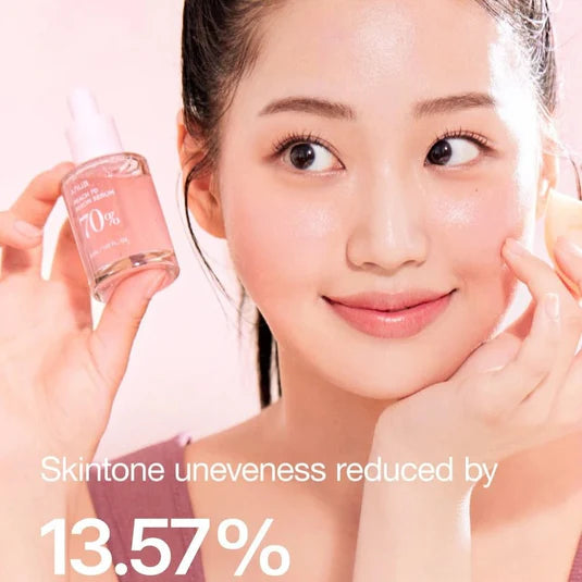 Anua Peach 70 Niacin Serum is a lightweight brightening serum that improves skin tone and hydration with peach extract and niacinamide.