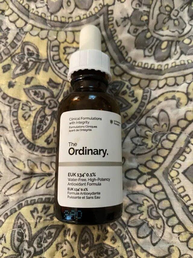 The Ordinary EUK 134 0.1% is a water-free, high-potency antioxidant serum that uses advanced synthetic antioxidant technology to neutralize free radicals, protect against environmental damage, and prevent visible signs of aging.
